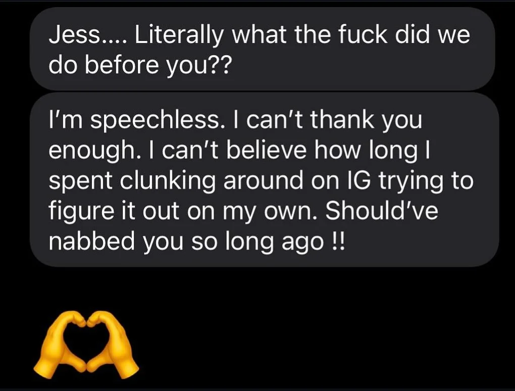 👉 Developed engaging story series that successfully marketed her digital products on a regular basis, which we then optimized into a series of Highlight Bubbles that continue to sell her offers daily.